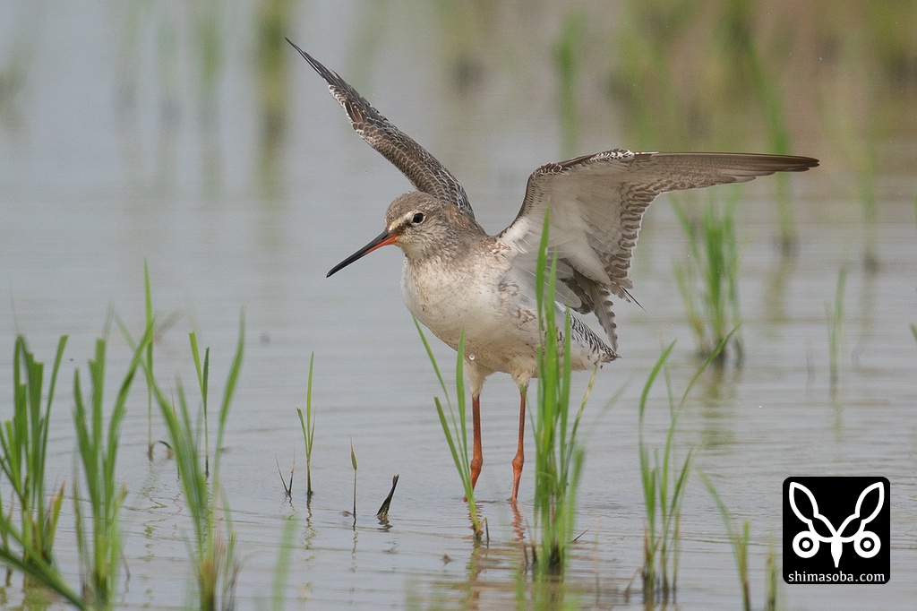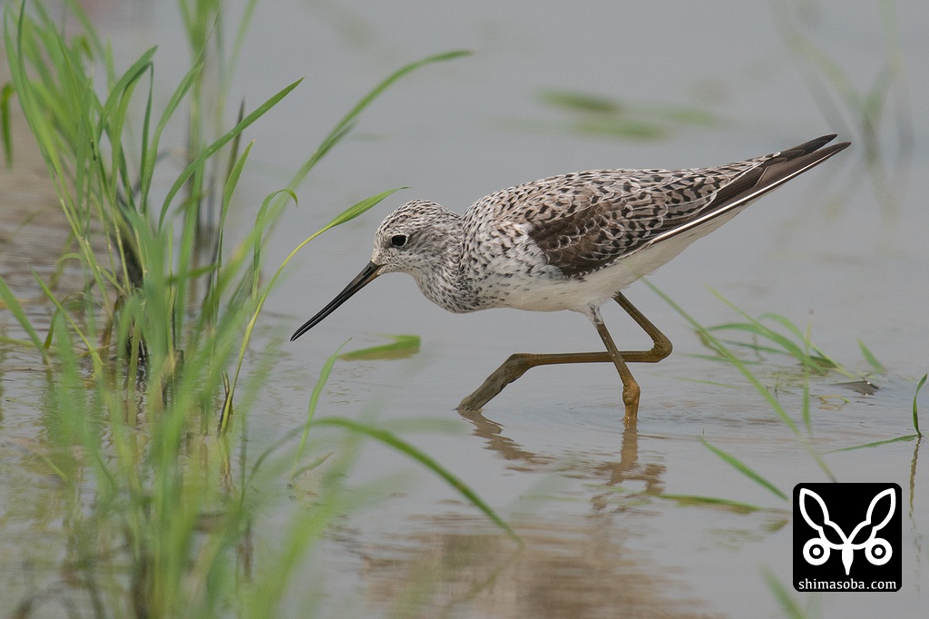 アオアシシギ第1回夏羽へ。