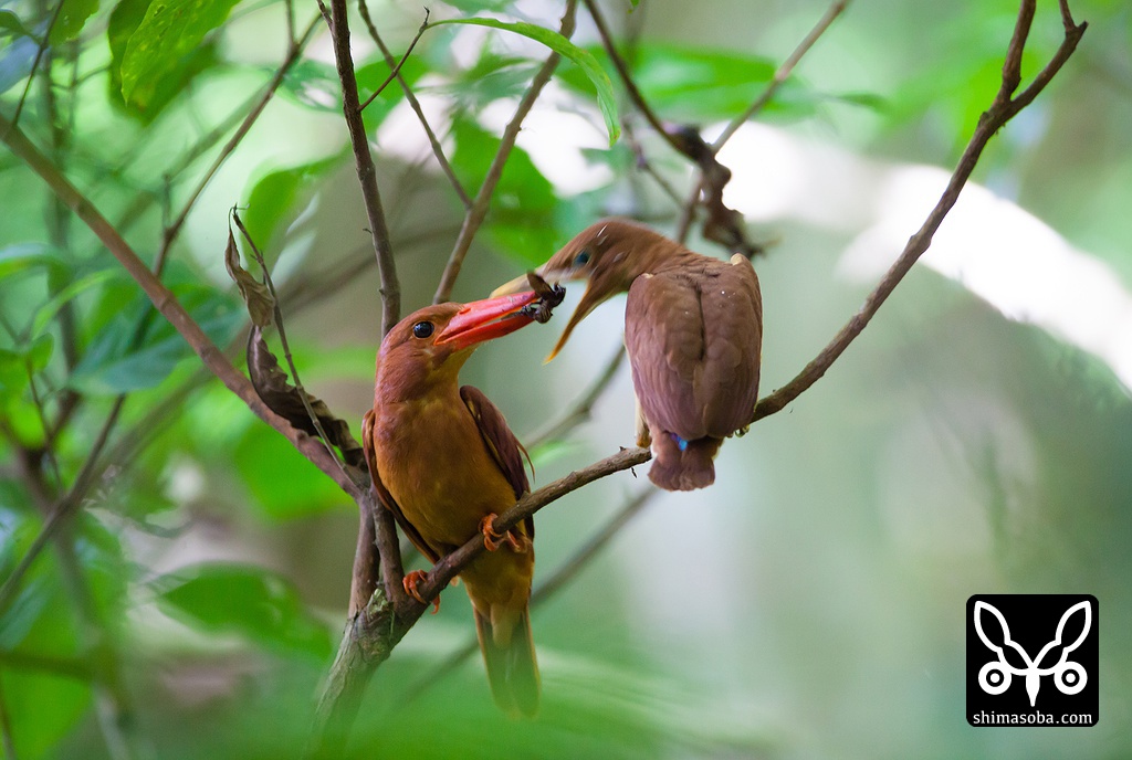 リュウキュウアカショウビン巣立ちビナへ給餌