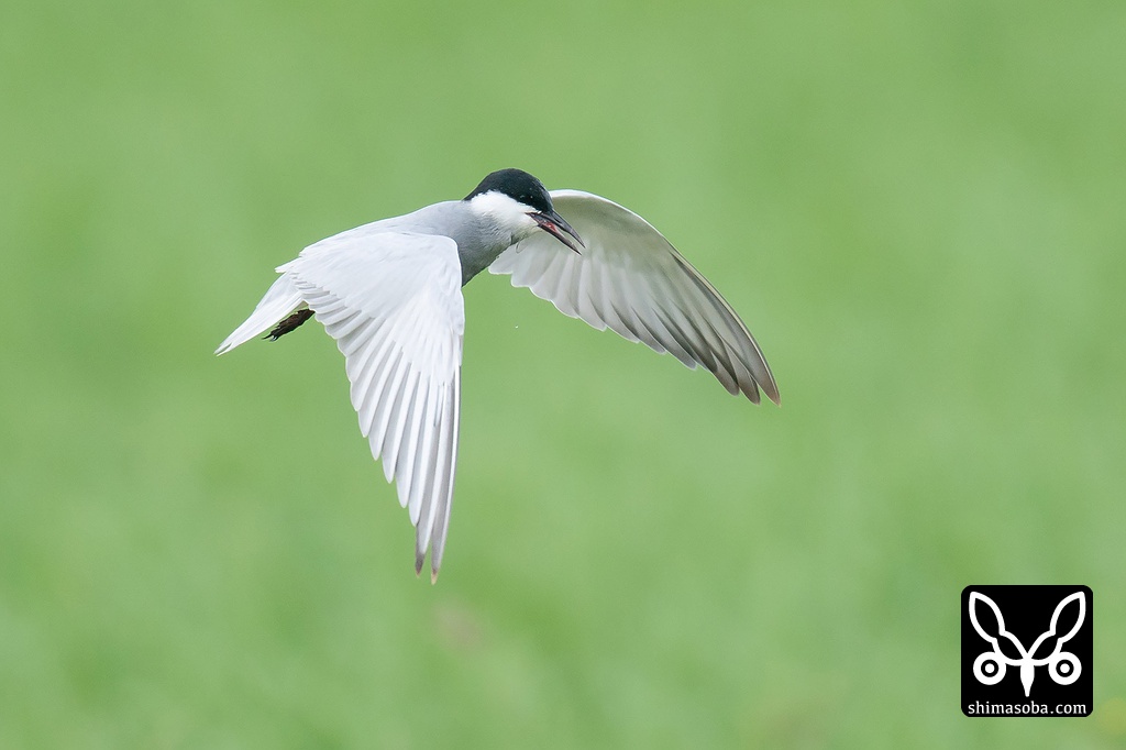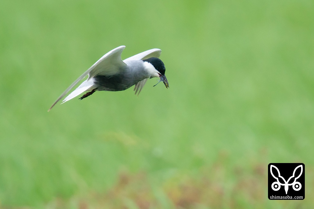 クロハラアジサシは稲の上をひらひらと飛びまわっていた。