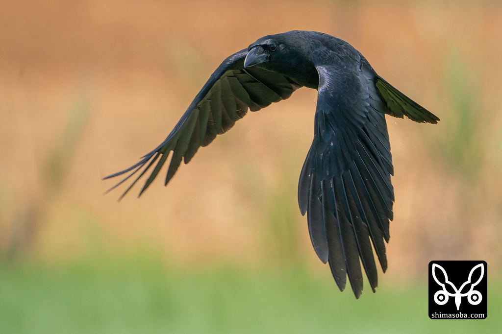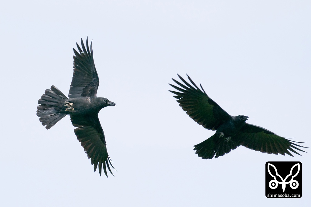 オサハシブトガラス飛翔。
