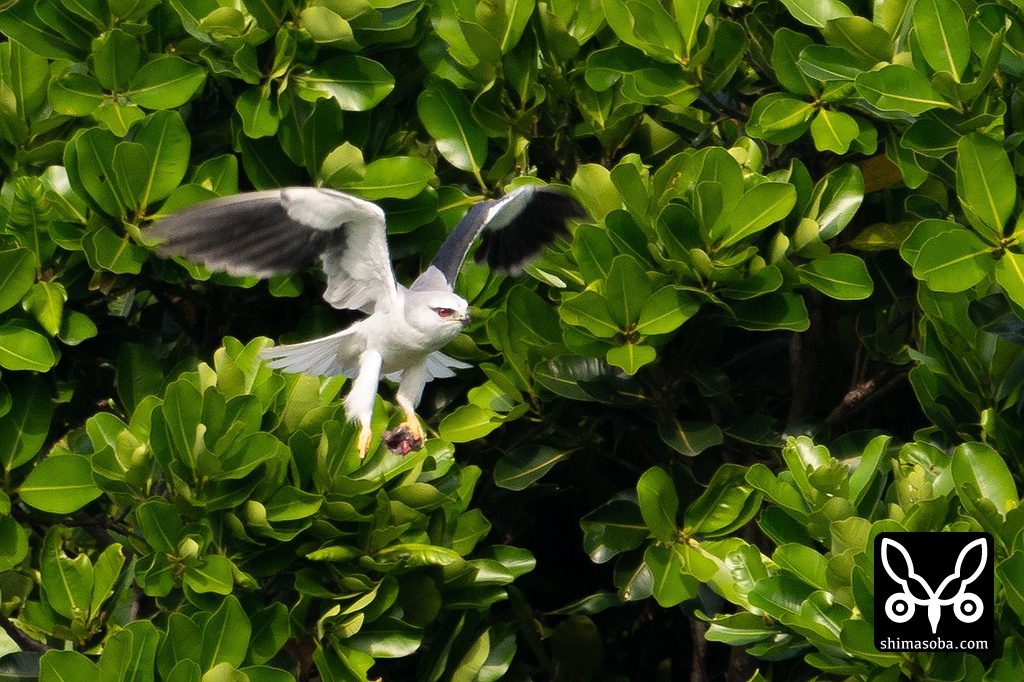 ネズミを捕まえたカタグロトビ。