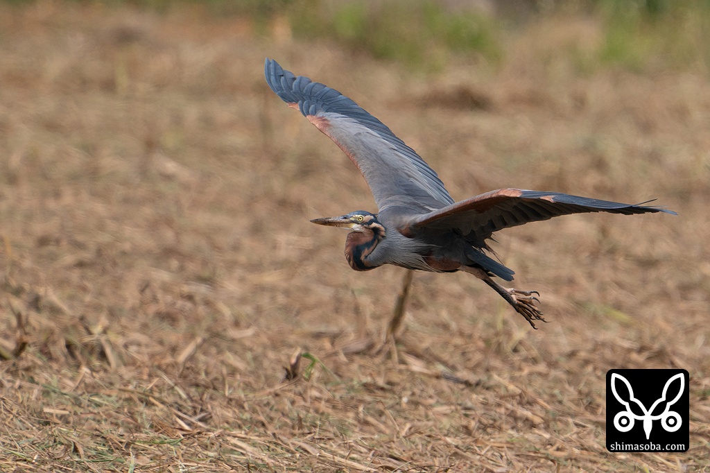 キビ畑にやってきたムラサキサギ。