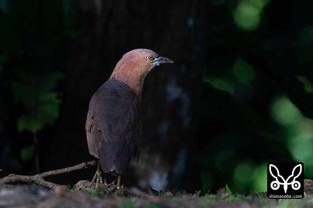 暗い影から姿を現したミゾゴイ。美しい個体です。