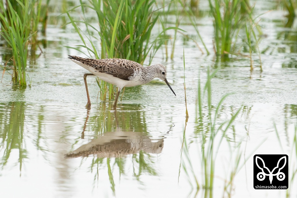 ソリハシシギは十数羽の群れが飛来していました。今季初の撮影。