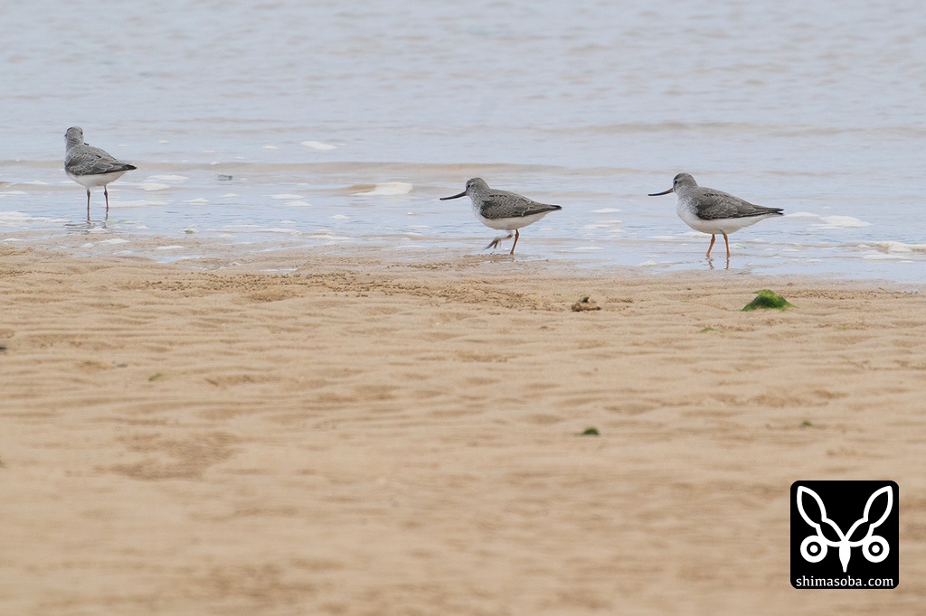 海岸では、今季初確認のホウロクシギと今季初撮影のソリハシシギ、ダイゼン、キアシシギ、イソシギなどがいました。チュウシャクシギとダイシャクシギもいましたが、干潮で鳥が遠くて撮影できず…。