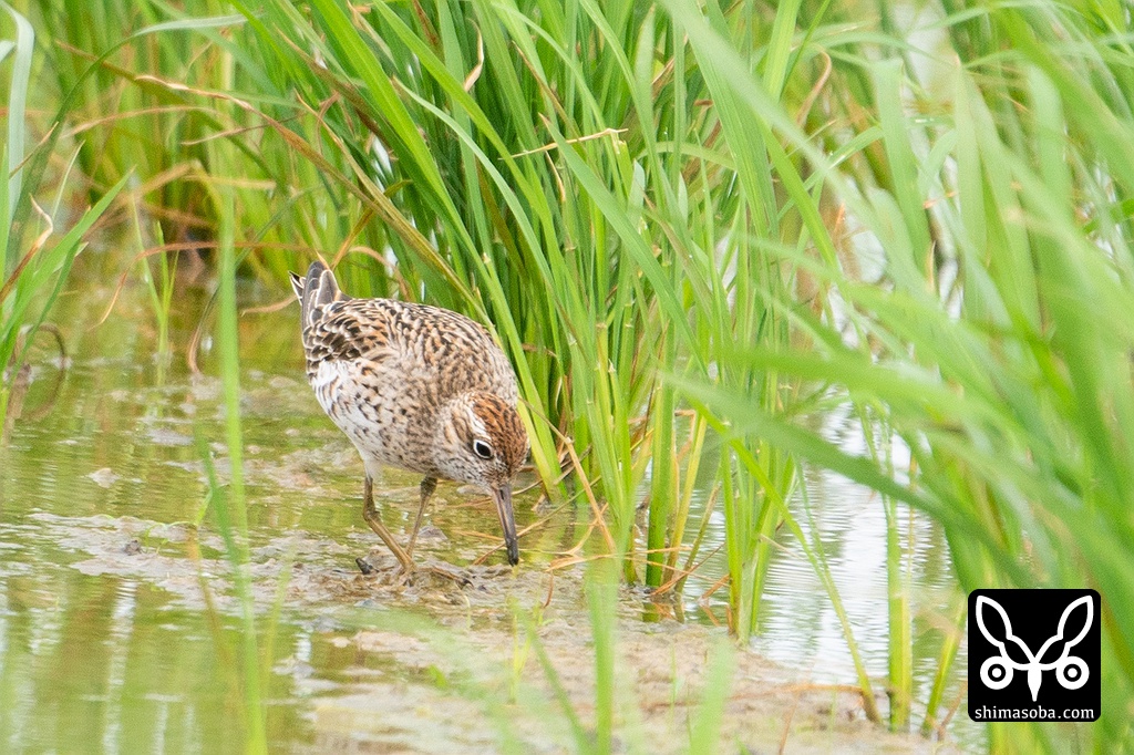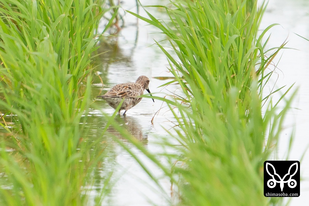 ウズラシギは10羽ほどの群れが田んぼに降りていました。
