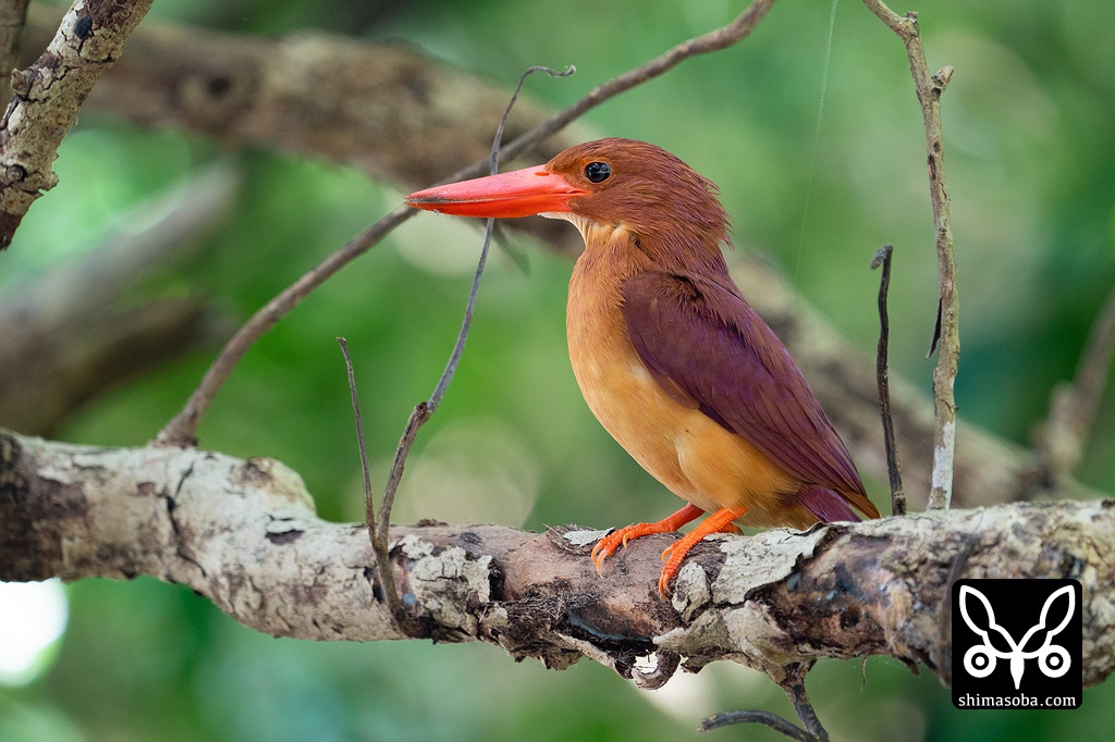 公園のアカショウビン。メス。近くで親子がバドミントンをしていましたが、あまり気にしない様子。