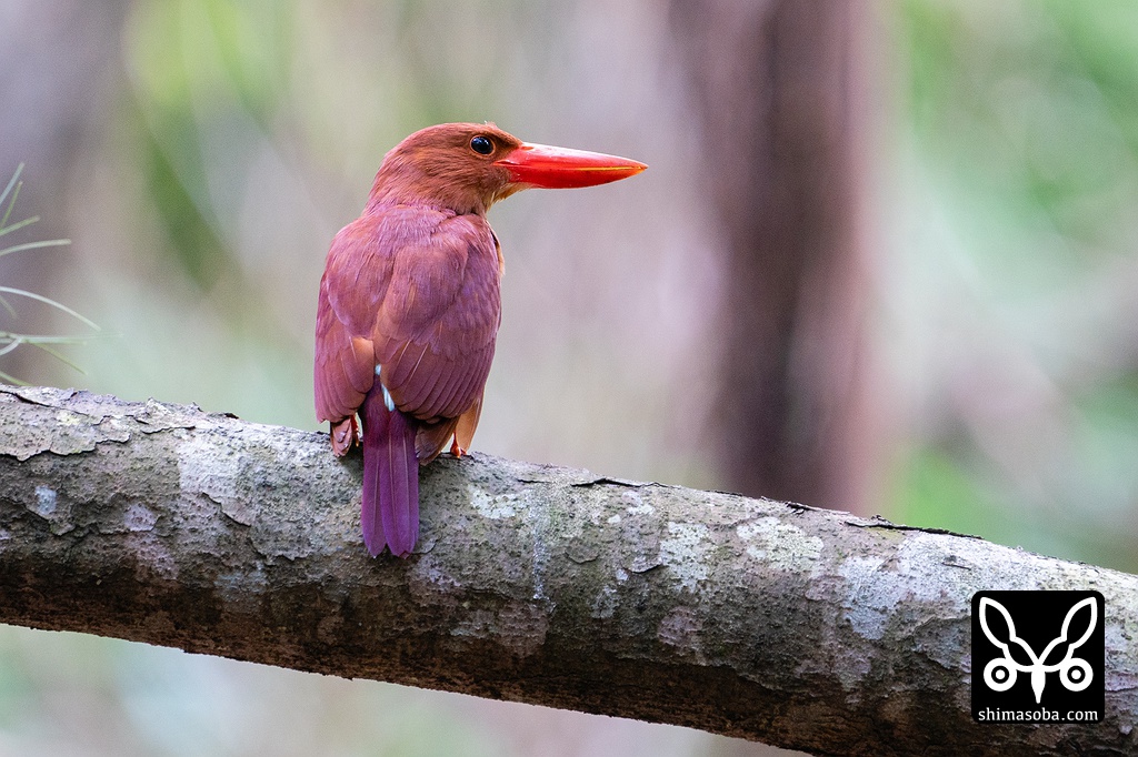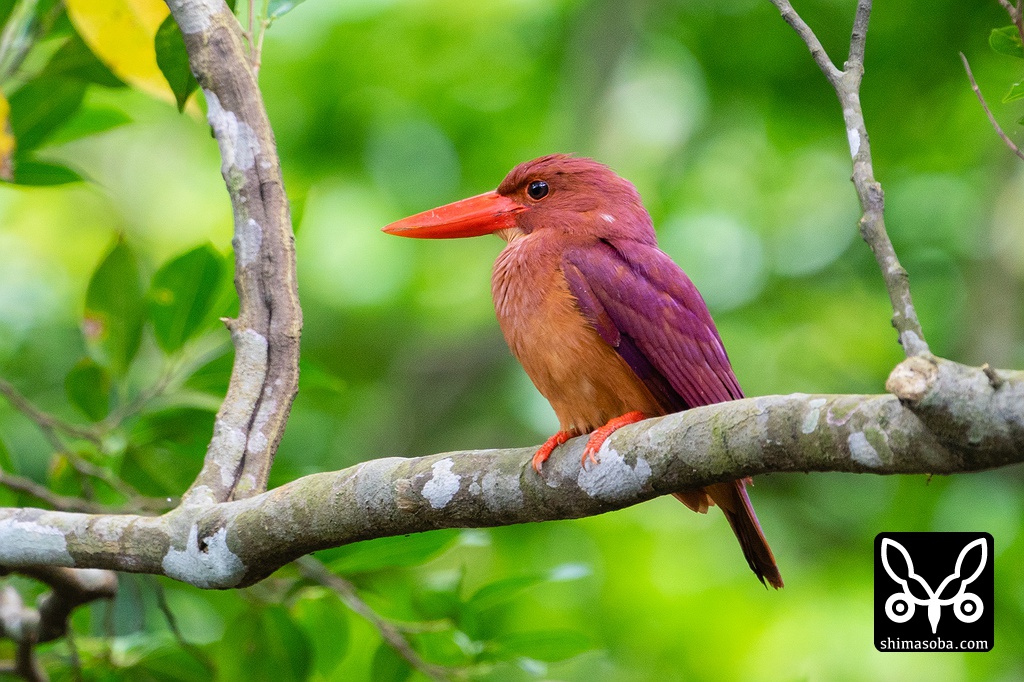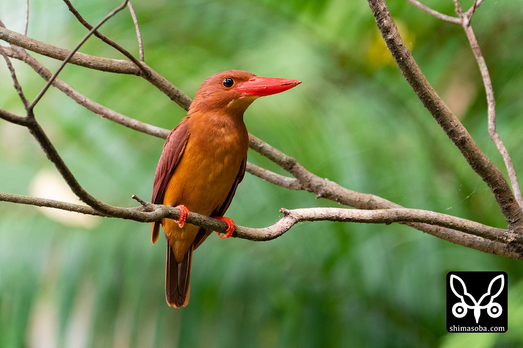 林道入り口を縄張りにするアカショウビン。雌雄は不明。