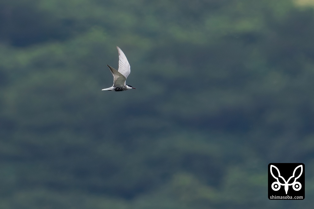 大きなオオアジサシに交じり小さなアジサシも舞っています。双眼鏡でのぞいてみるとクロハラアジサシが数羽いました。オオアジサシとともに獲物を狙っていました。