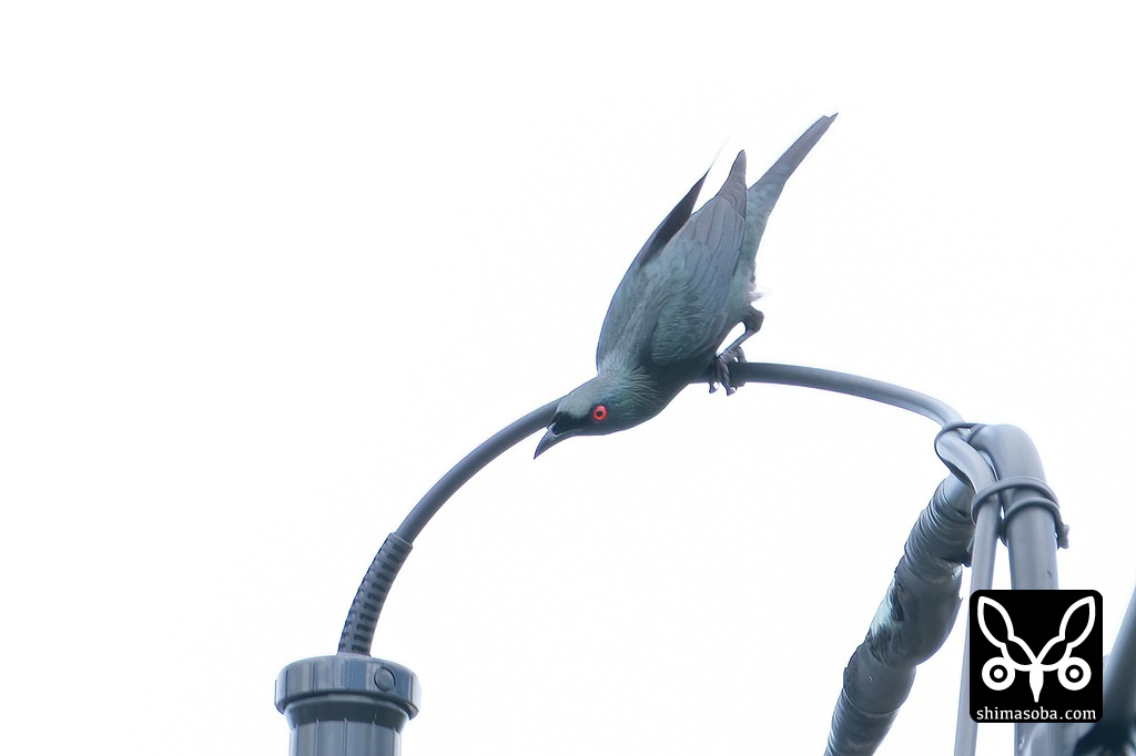 ミドリカラスモドキは、アカメガシワの実がお気に入りのようで、電線に飛んでは何度も戻ってきていました。
