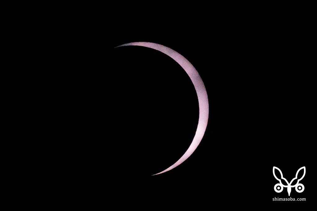 石垣島の日蝕は、15時55分20秒から始まり、18時25分29秒に終わりを迎えました。食の最大は17時16分23秒でしたが、同時に厚い雲が流れてきて太陽を隠してしまいました…。ISO感度を最大まで上げてなんとか撮れましたが、17時16分33秒と食最大から10秒ほど遅れてしまいました。
