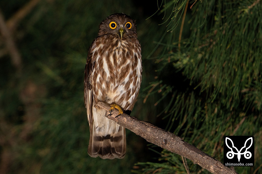 林のかげで風を避けながら獲物を探していたコノハズク。 先日、撮影したオス とペアになっている個体と思われます。