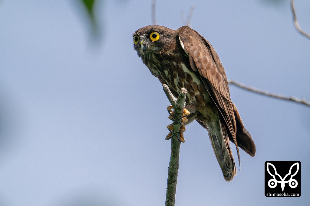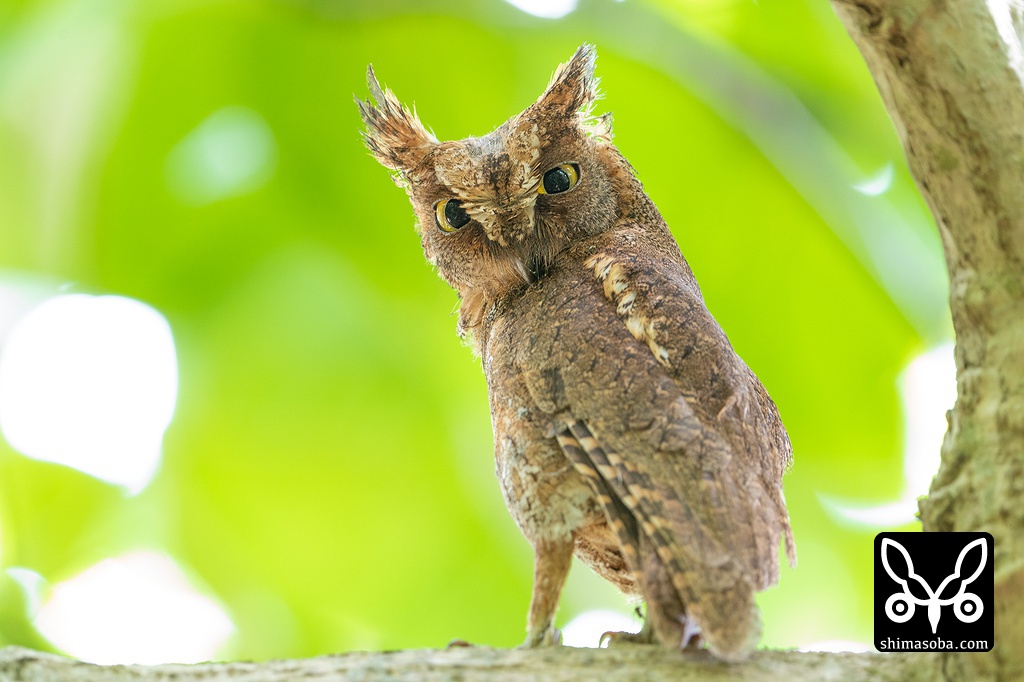 見返りコノハズクのオス。観察しているペアのうち、ここの巣立ちが一番早そうです。
