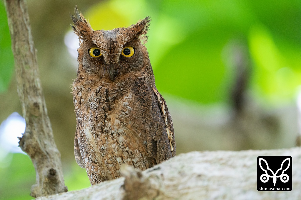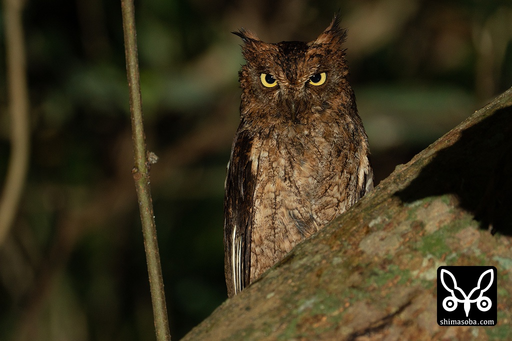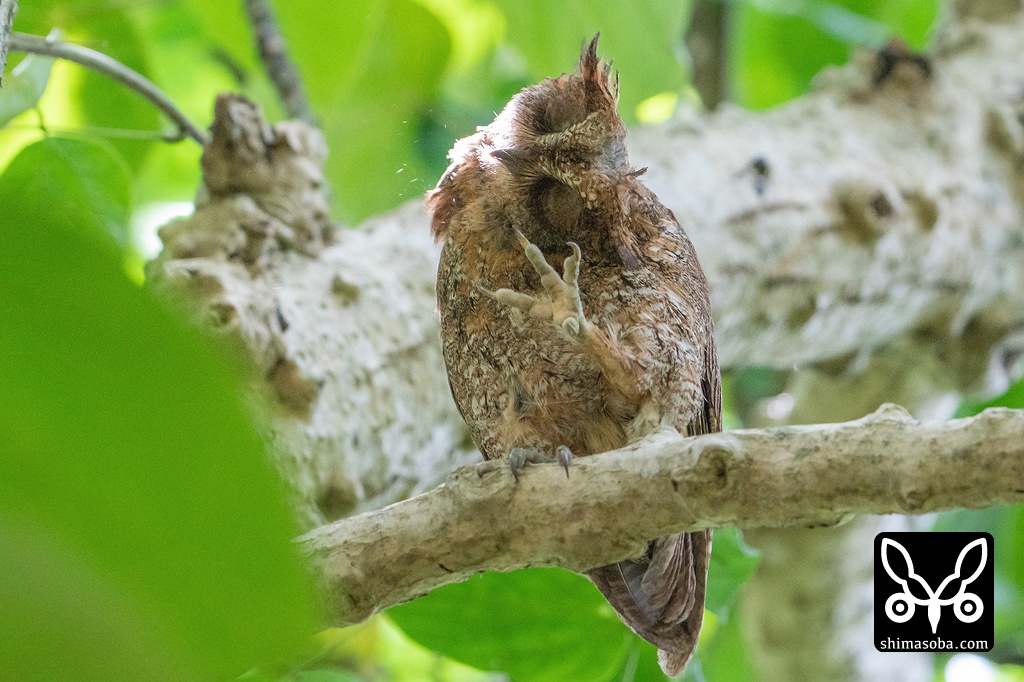 こちらも近所のコノハズク。これはメス個体で巣の前の枝に止まっていました。この時間は、ヒナへの給餌も終わっているので面白くないですね…。^^;