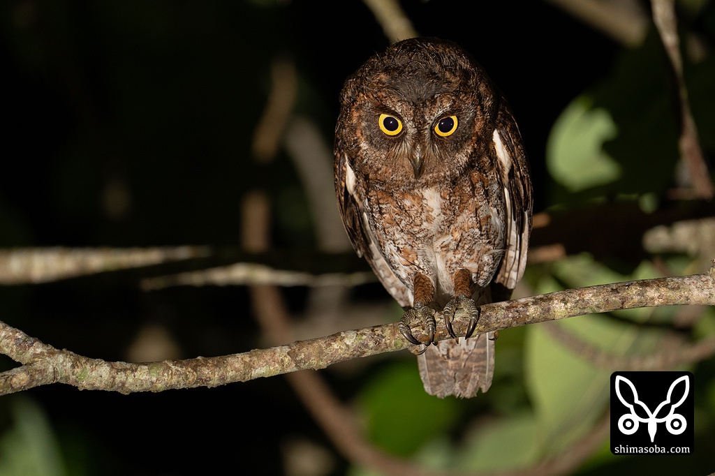上と同個体。懐中電灯めがけて飛んできたヤエヤマクマゼミを捕まえた棚ぼたコノハズク。獲物がでかすぎたのか、すでにヒナたちは満腹になっているのか自分で全部食ってしまいました。