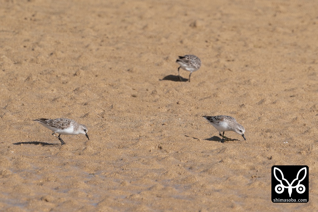 海岸では、ツバメチドリやメダイチドリ、シロチドリ、トウネン、イソシギ、ソリハシシギが田んぼでは、タカブシギやヒバリシギ、アオアシシギ、アカアシシギ、コチドリが長旅で疲れた体を休めていました。