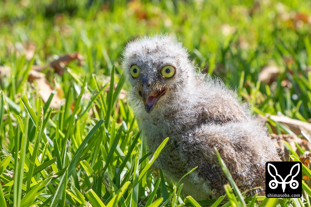 34度まで気温が上がった石垣島。コノハズクのヒナも暑さに口を開いています。