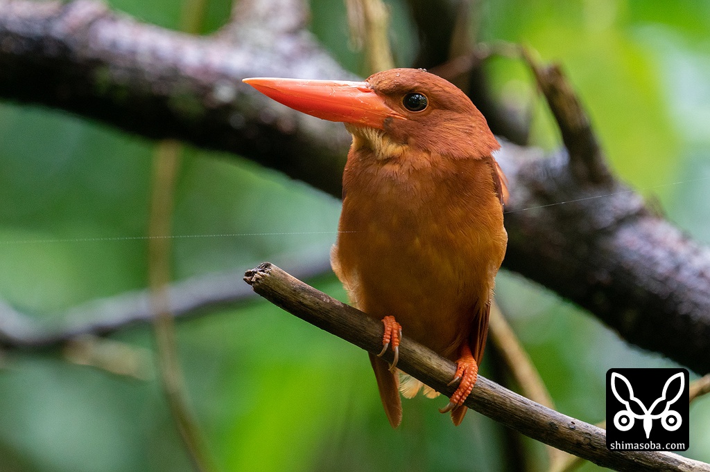 アカショウビンのオス。子育ても終わって一安心というところでしょうか。まだまだ美しい姿ですが、アカショウビンは間も無く換羽が始まりボロボロになっていきます。