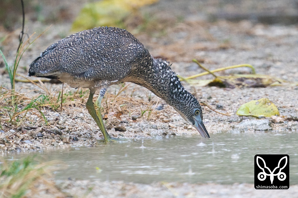 巣立ち後、何日がたったズグロミゾゴイの幼鳥。まだ口ばしも短く、虹彩も青みがかって幼さが残ります。