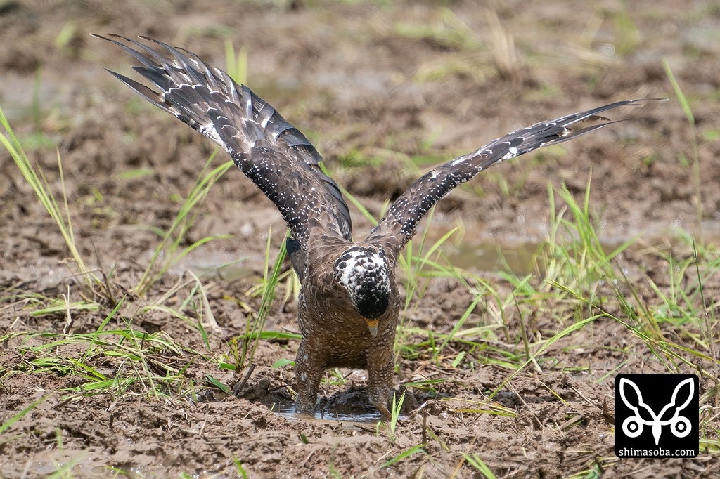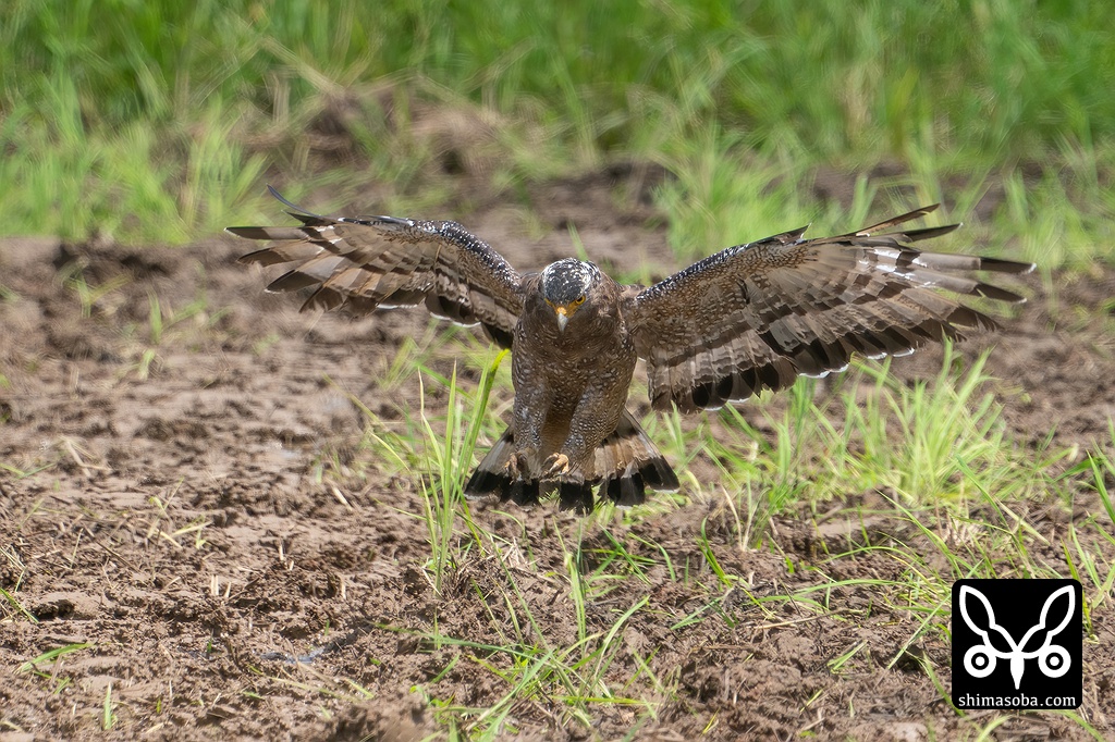 獲物に飛びかかるカンムリワシ。獲物は何か不明。2倍のテレコンバーターをかませていますがしっかりフォーカスしてくれます。