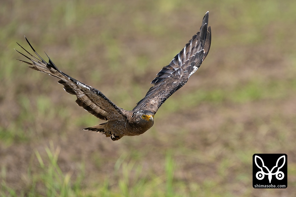 カンムリワシの飛翔。しっかり目にピントが来ています。