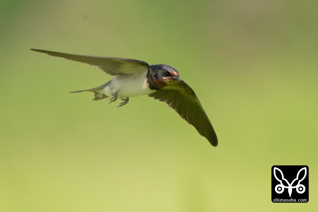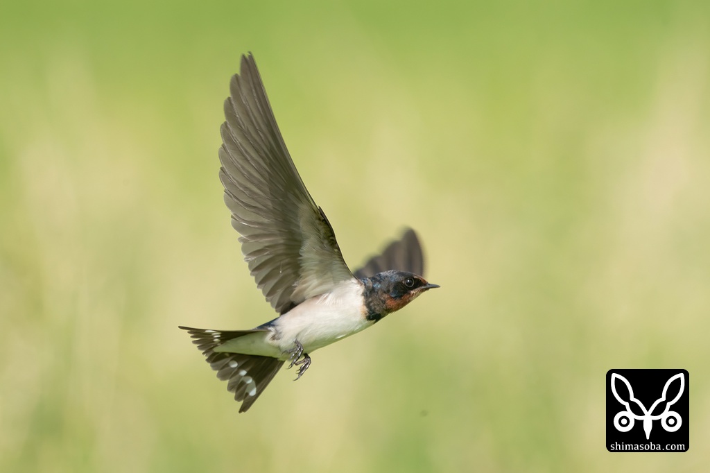 この時期、秋の渡りで南下していくツバメが農耕地に成鳥、幼鳥の大群が現れます。リュウキュウツバメやアカハラツバメ、コシアカツバメなどが混じることもあります。