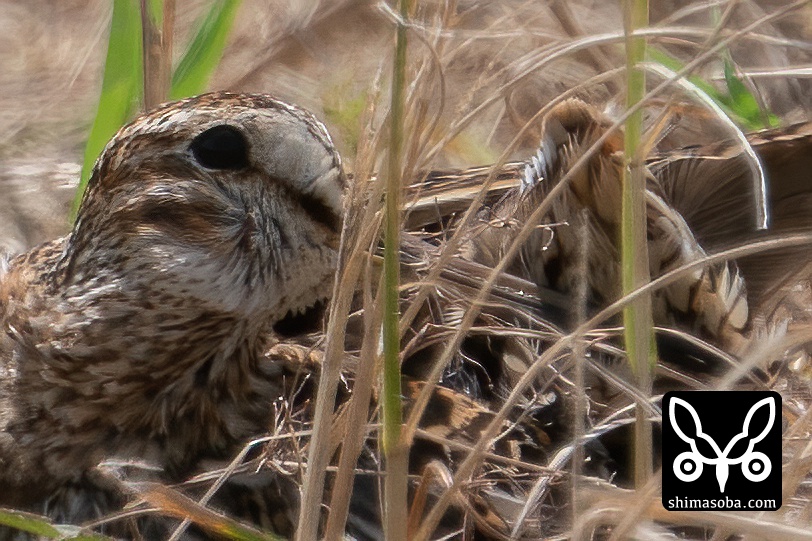 乾いたあぜ道でハリオシギを発見。近すぎて思いっきり警戒して尾羽どころではありませんが、ハリオシギだと分かりやすい個体で成鳥です。