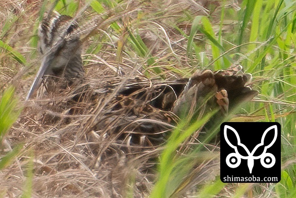 遠くにハリオシギらしい個体を発見。運よくすぐに尾羽を見せてくれました。しっかり針のような尾羽が見えていますね。^^
