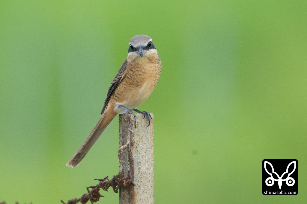 こちらもカラアカモズ。齢は上の個体と同じ。