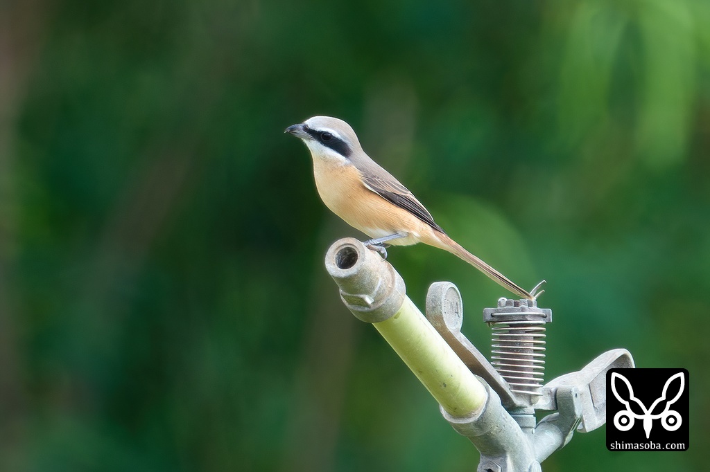 シマアカモズのオス。頬の下あたりや脇にわずかながら鱗模様が見えるので第1回夏羽でしょうか。