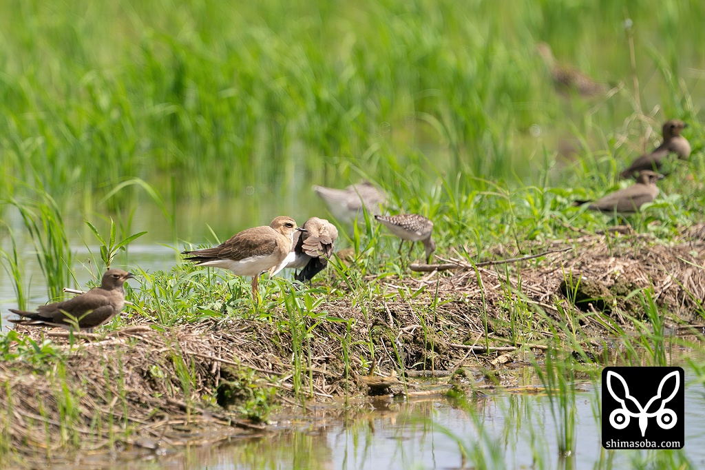 ツバメチドリは増減を繰り返し、最高で100羽近くの群れになっていましたが、きょうは20羽ほどでした。ハジロクロハラアジサシも2カ所で3羽が滞在中で、ビュンビュンと田んぼや畑の上を飛び回っていました。