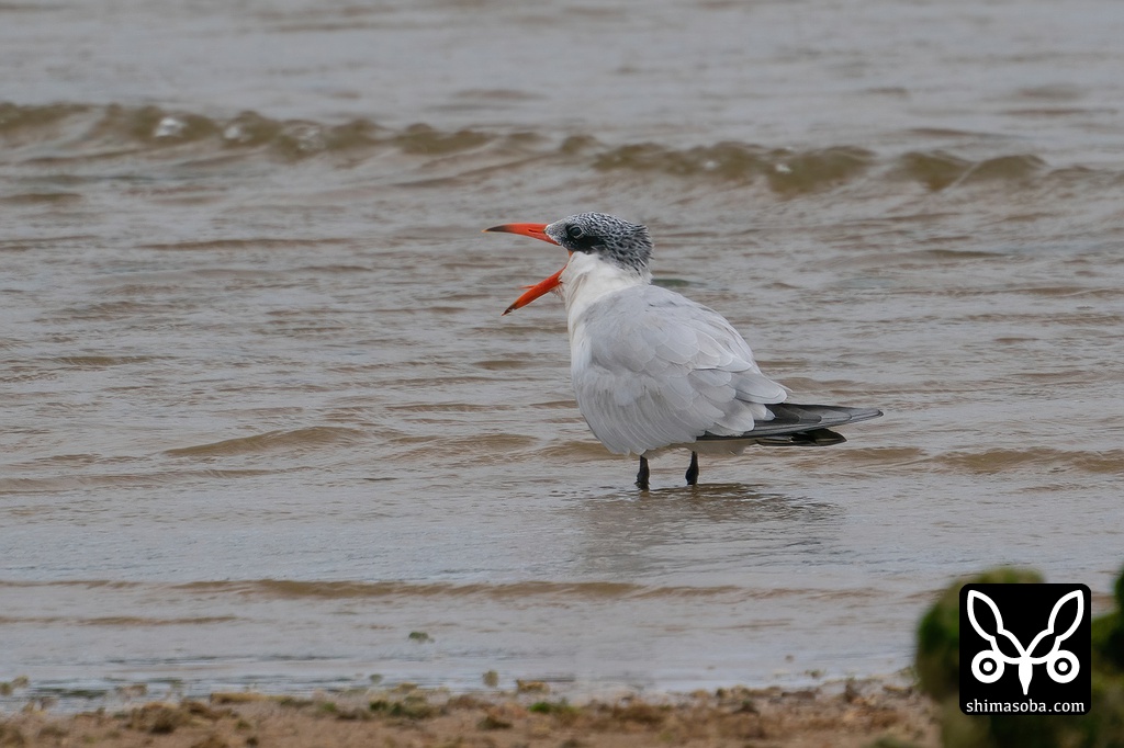 オニアジサシ成鳥冬羽。魚を捕まえた直後なのか、くちばしにウロコがたくさん付着していました。