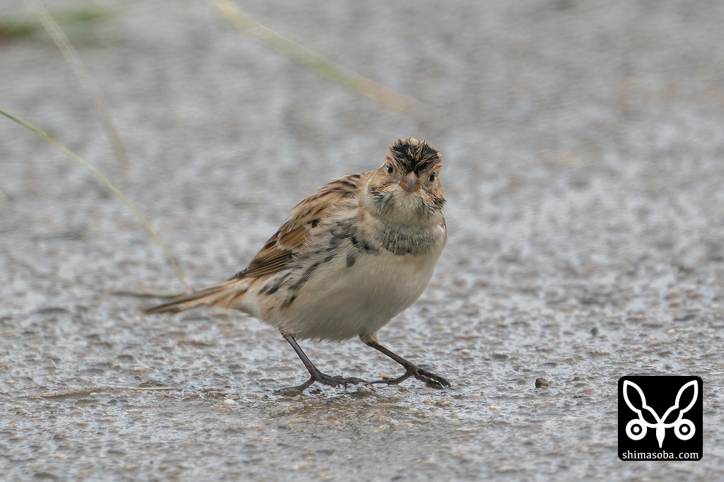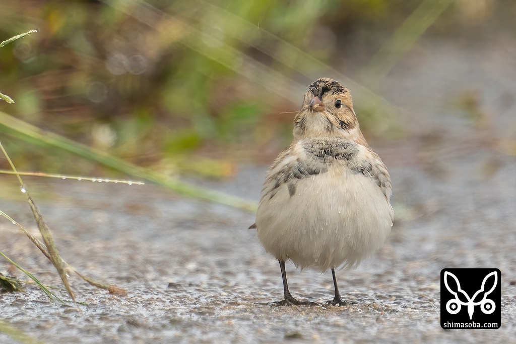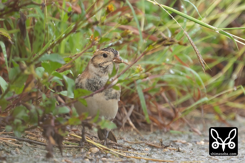 それから約2週間たっているのですが、土砂降りの中、なんと同じエリアに1羽のツメナガホオジロを発見!! 雨が弱まるのを待ち、なんとか写真に残すことができました。
