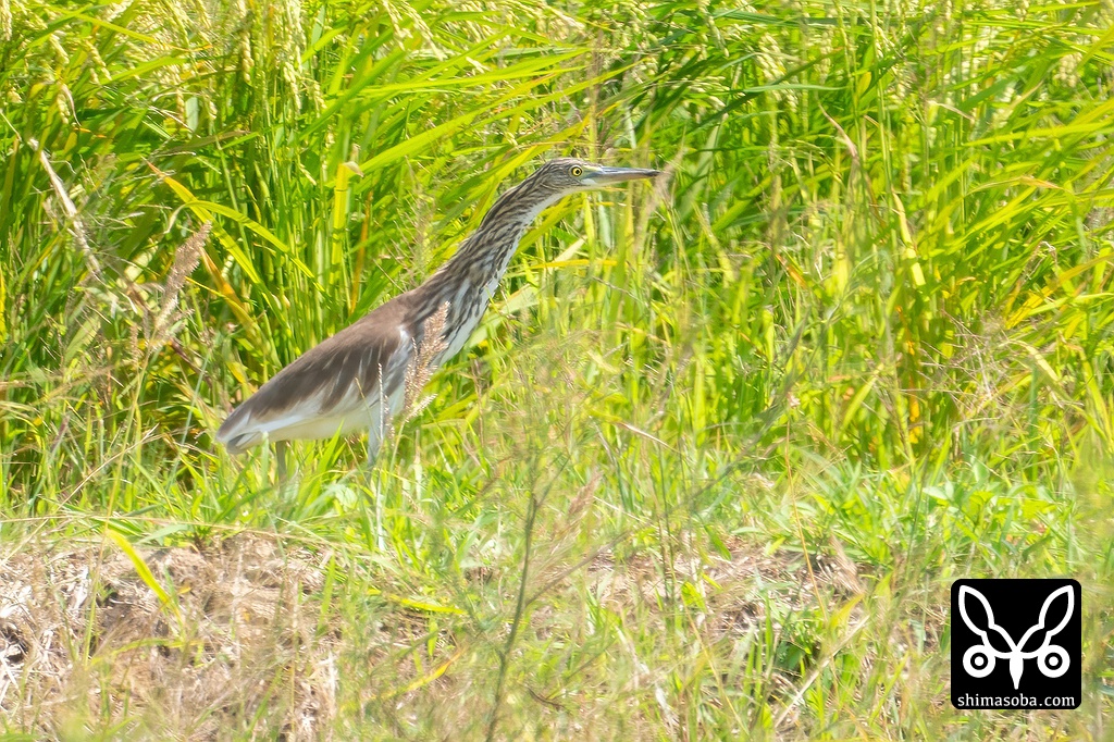 - ブロンズトキ、レンカク、クロハラアジサシが同じ田んぼに滞在中(2019年6月30日)
