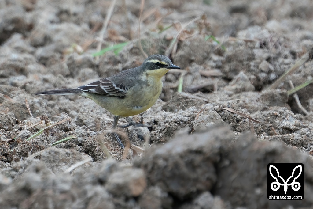 ホオジロハクセキレイ、ツメナガセキレイ、キセキレイ合わせて40羽ほどの群れが、強風を避けて田んぼに集まっていました。