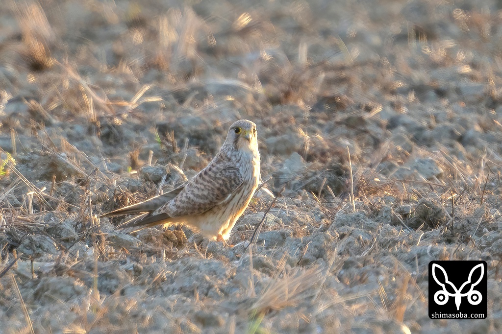 チョウセンチョウゲンボウが田んぼに飛来しています。行動範囲は広く、神出鬼没ですが、警戒心の弱い個体で近くで観察できます。