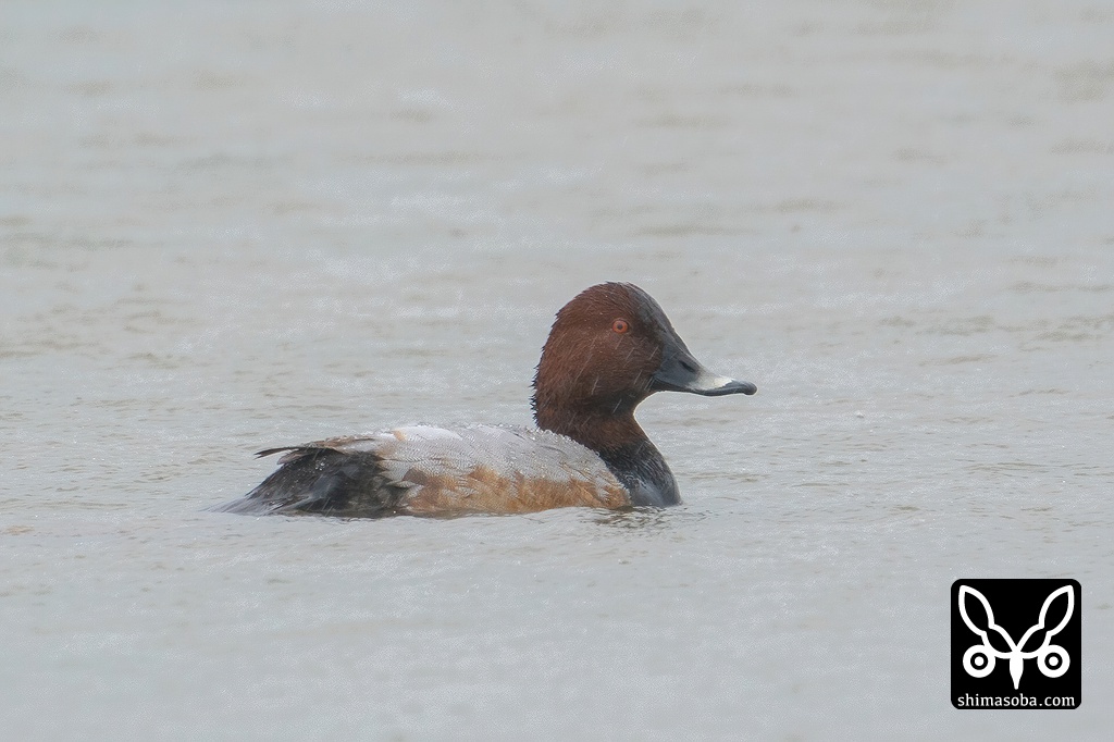 今季初のホシハジロは1羽で飛来。オナガガモと行動を共にしていました。