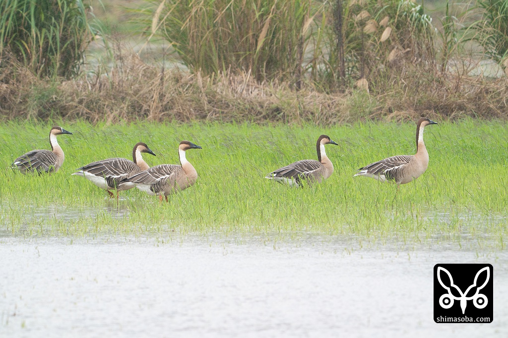 サカツラガン5羽。いつまで滞在するのでしょうか。