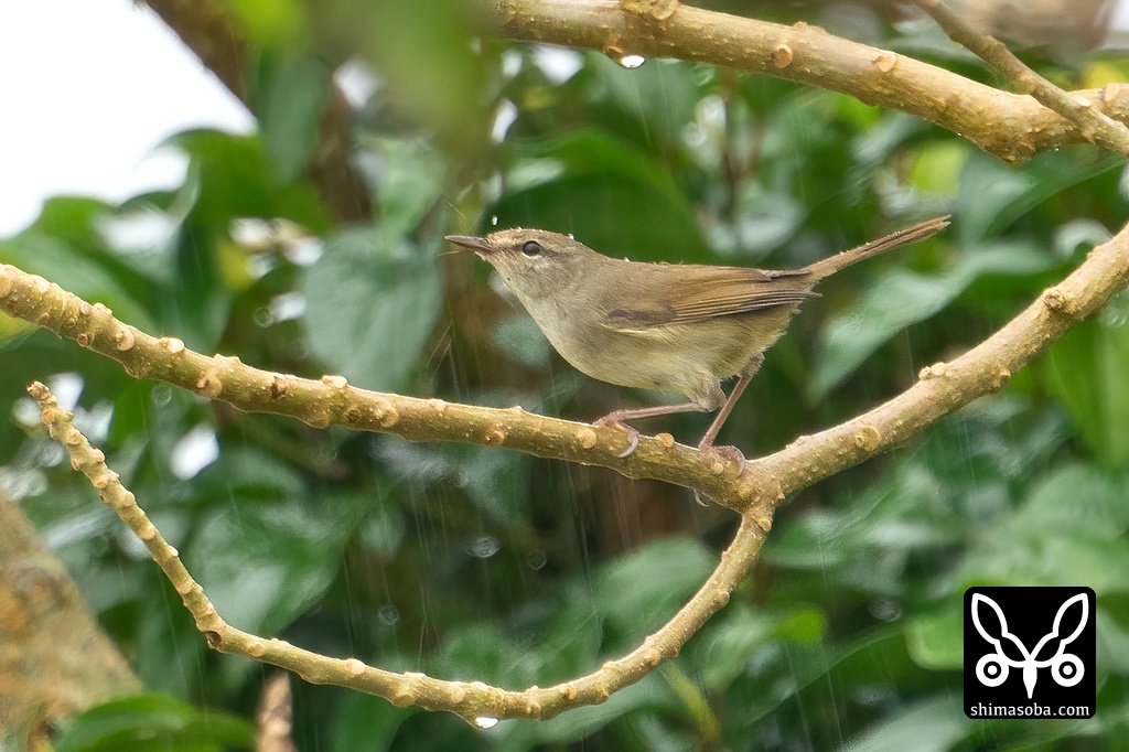 いつも鳴き声だけで姿を現さないウグイスが開けた場所に出てきました。雨が降っていて警戒心が緩んでいるのでしょうか。