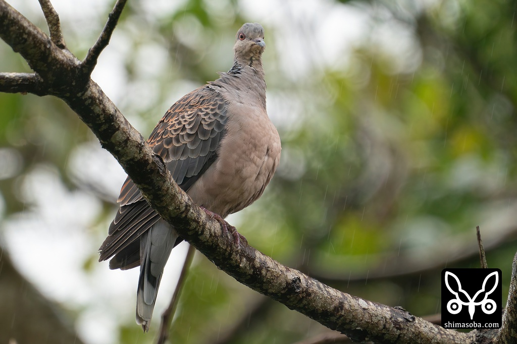 リュウキュウキジバトの成鳥。雨のシャワーを浴びていました。