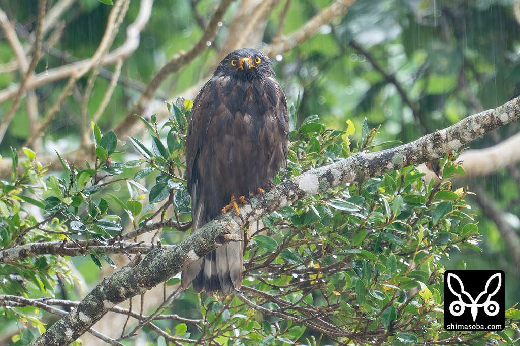 警戒心の強い暗色型サシバですが、雨のおかげでいつもより近くで観察できました。
