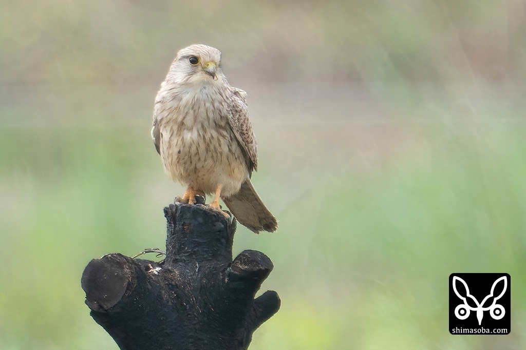見張り台の下を人が通ろうが無関心。愛想のいいチョウセンチョウゲンボウです。