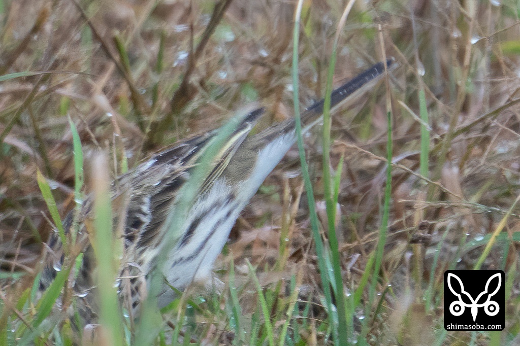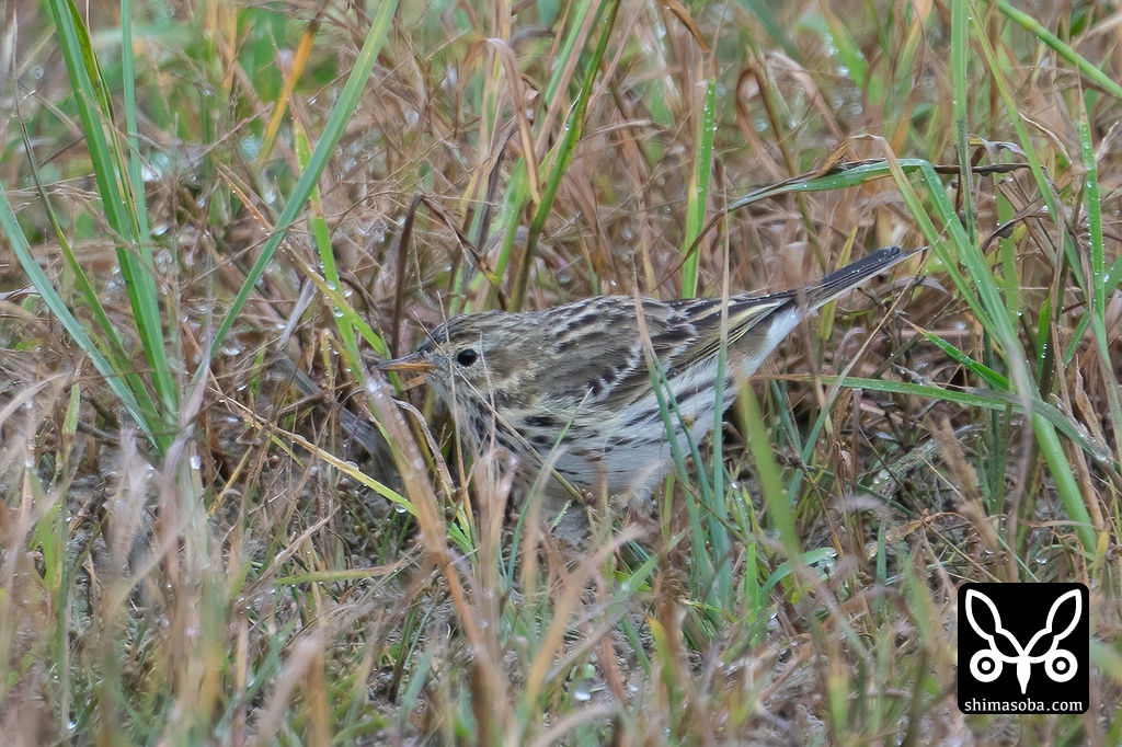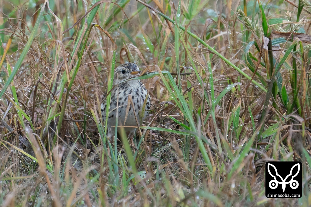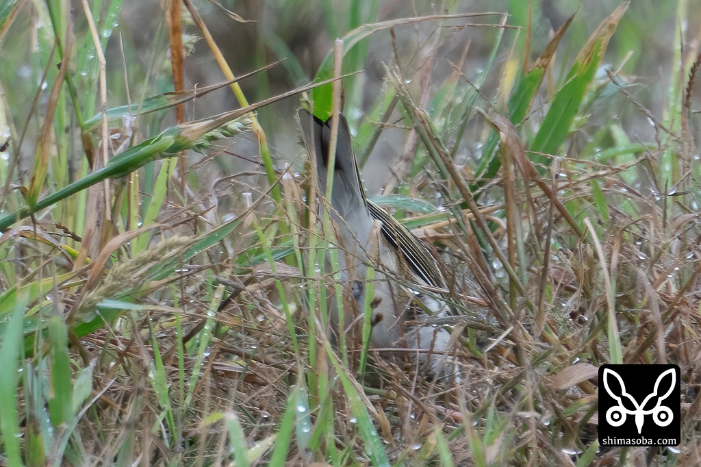 草むらの合間をちょこまかと忙しく動き回り、双眼鏡で捉えてもカメラに持ち替えるとマキバタヒバリは、ふたたび行方不明。撮影に難儀しましたが、識別点を多く確認したいので時間の許す限りマキバタヒバリの写真を量産しました。^^;