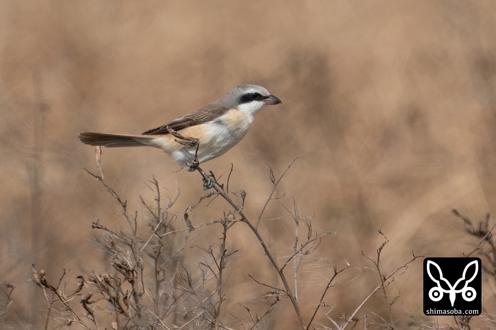 シマアカモズの成鳥オス。