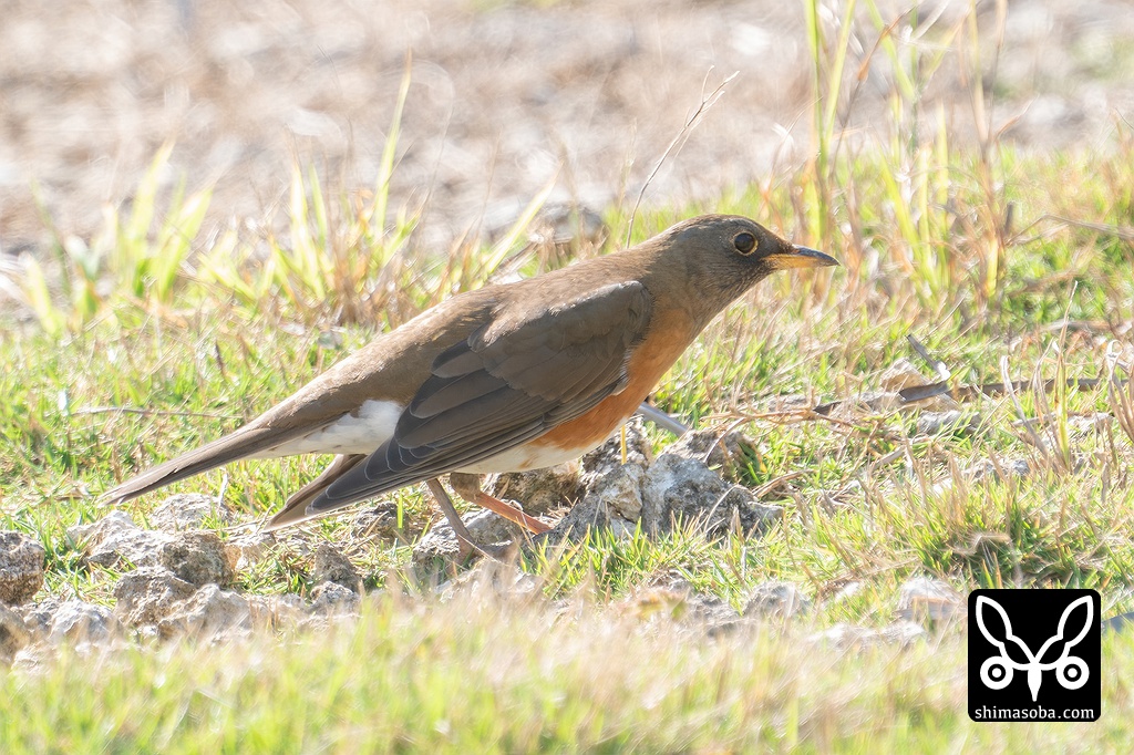警戒心のないアカハラ成鳥オス。