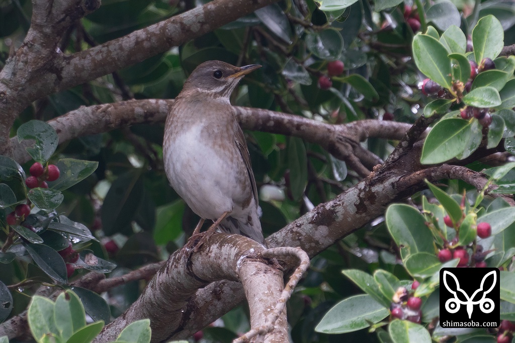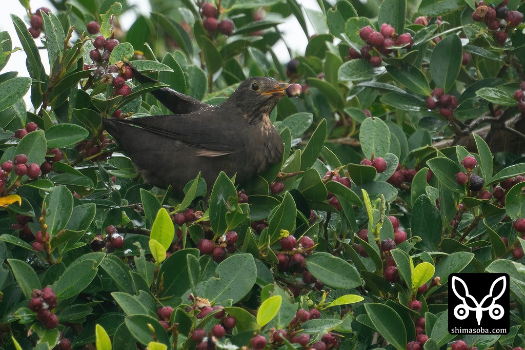 3日前に今冬初のクロウタドリ を発見して以来、毎日のように島内で出ており、きょうでこの冬5羽目となりました。きょうは雨の中、シロハラやアカハラとともにガジュマルの実を食っていました。