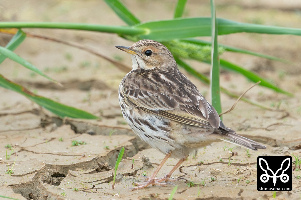 ムネアカタヒバリは冬羽後期になってくると背中の模様が目立たなくなります。