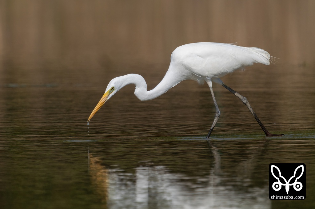 チュウダイサギは小さな水生昆虫を捕まえていました。あまりに小さな獲物なので何を食っているのかは不明。
