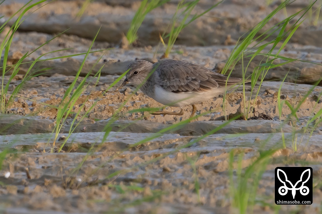 オジロトウネン成鳥冬羽。3羽がコチドリの群れと行動を共にしていました。