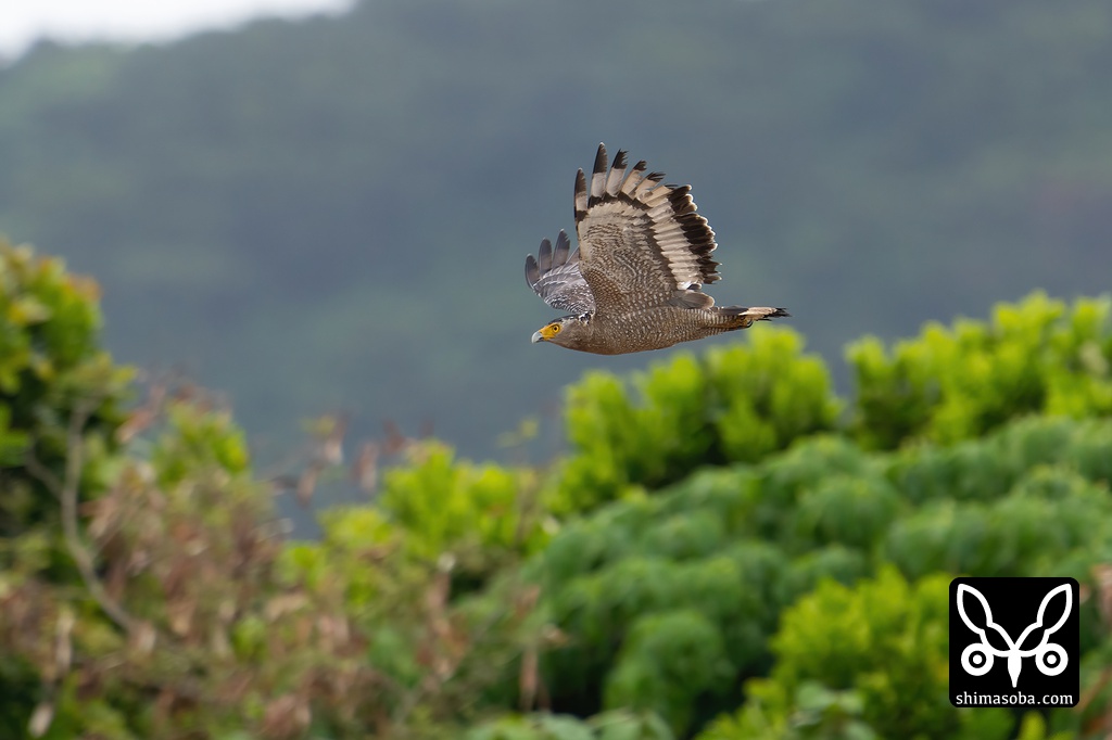 田んぼを横切るカンムリワシ。この時季はとても見いやすいです。